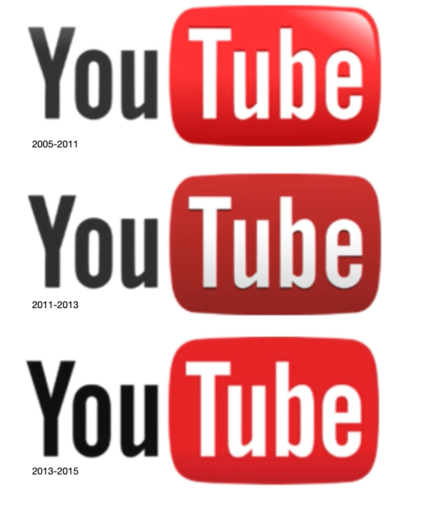 The YouTube logo is a logo that has not changed much, but has changed frequently. Every few years the logo is changed slightly, from looking 3 dimensional to 2 dimensional, to a gradient color, to a flat color. From a lighter red to a darker red fluctuating between every logo. And finally a change in order of words and images. Here you will read all about the logos through the ages.